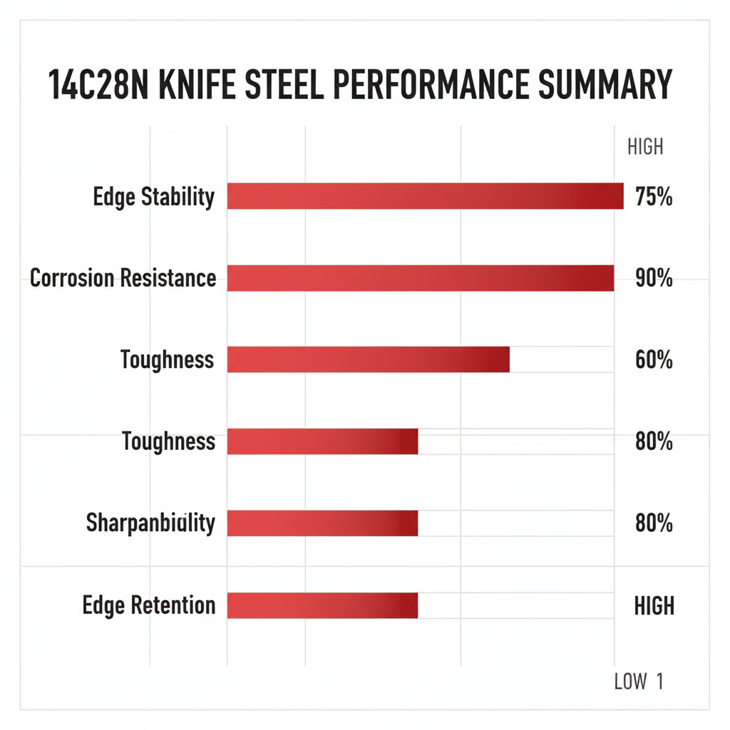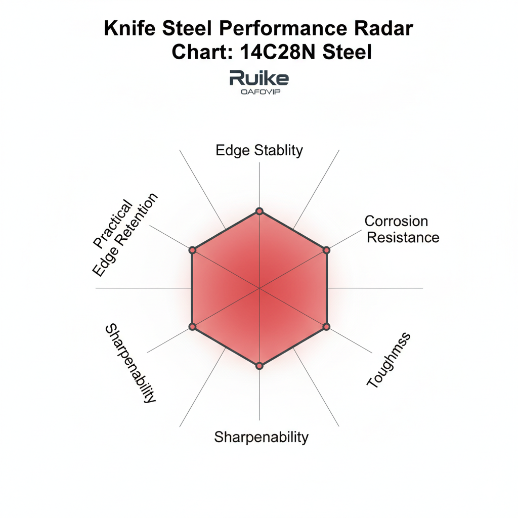 Performance depends on alloy design, heat treatment, geometry, and intended use. 14C28N is commonly chosen because its balance is appropriate for many knife applications.