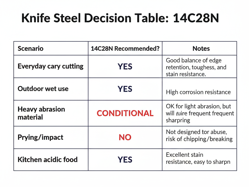 In practical knife selection, 14C28N is typically positioned as: