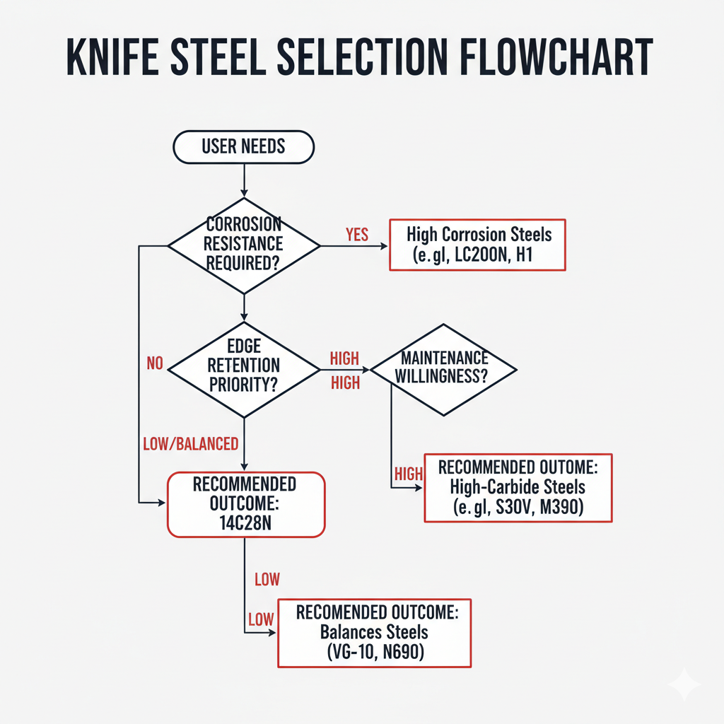 For knives, edge stability, corrosion resistance, and maintenance practicality often determine overall service value.